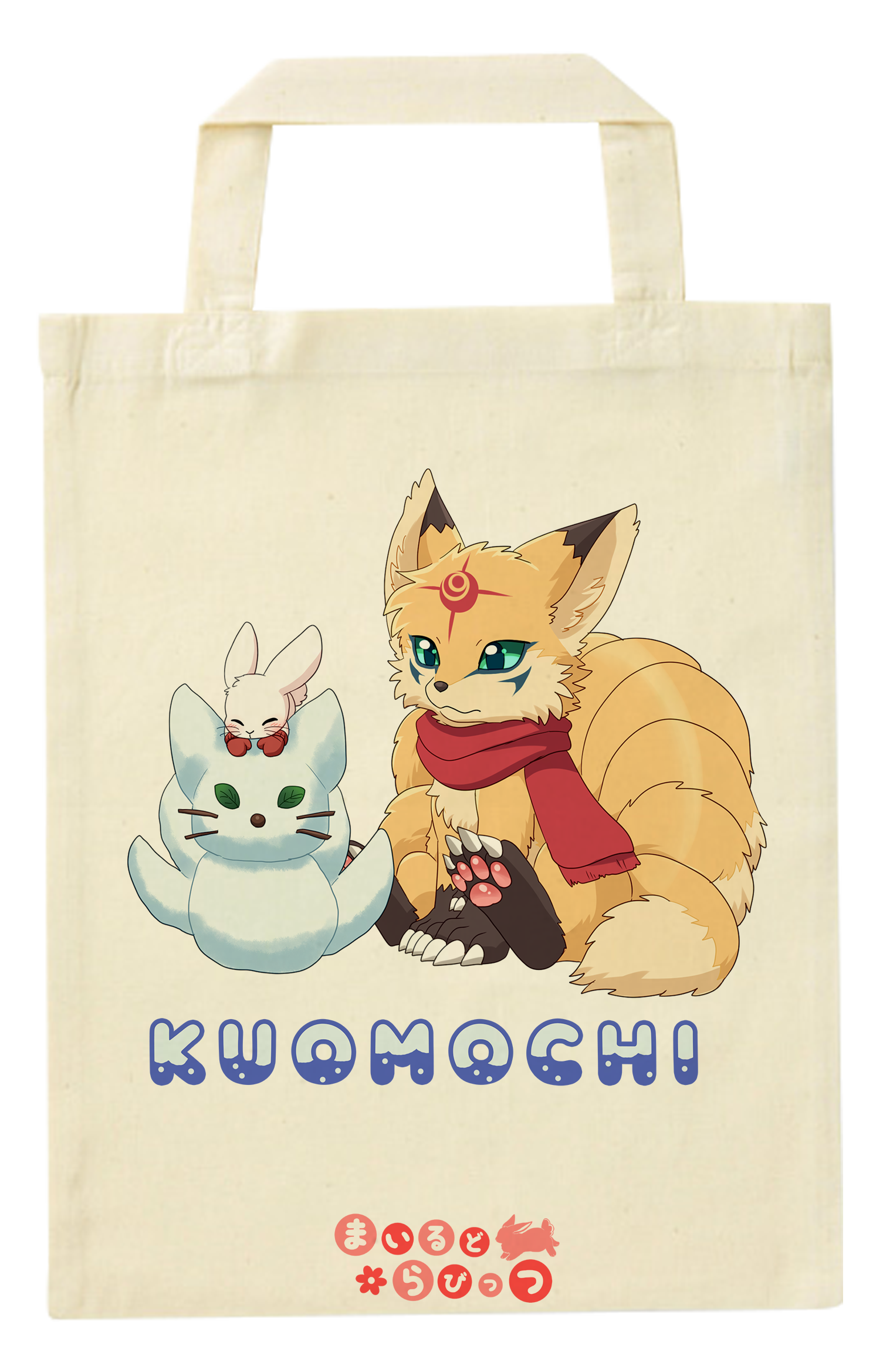 くおもちシリーズから雪だるまで遊ぶ可愛い2匹のエコバッグです。